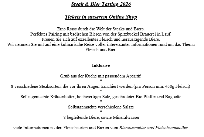 Exklusiv Steak & Bier Tasting Sa 17.10.2026 18:00 Uhr in Lauf - Genussveranstaltung am Spitzbuckel